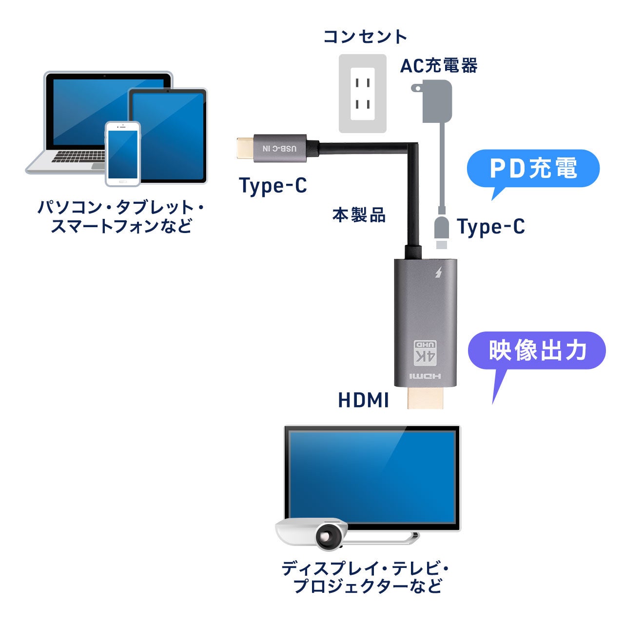 type-CからHDMIに簡単変換!高解像度で映像変換が可能かつ、type-C機器の高速充電も可能なHDMI変換アダプタを10月8日に発売
