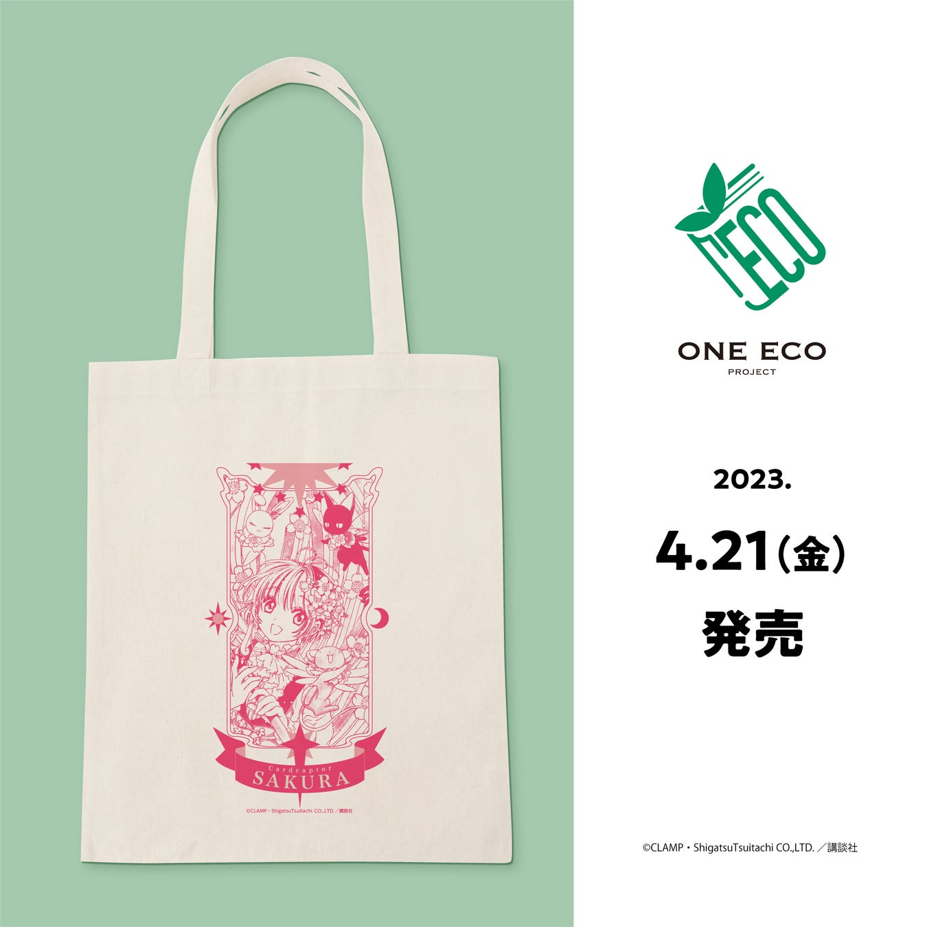 作品やキャラクターの魅力を通して、エコをより身近なものとして楽しみながら活動への理解を深めることを目的としたONE ECO PROJECTに『カードキャプターさくら クリアカード編』デザインが登場!4月21日(金)より本プロジェクトに賛同いただいている全国の書店にて発売予定です。