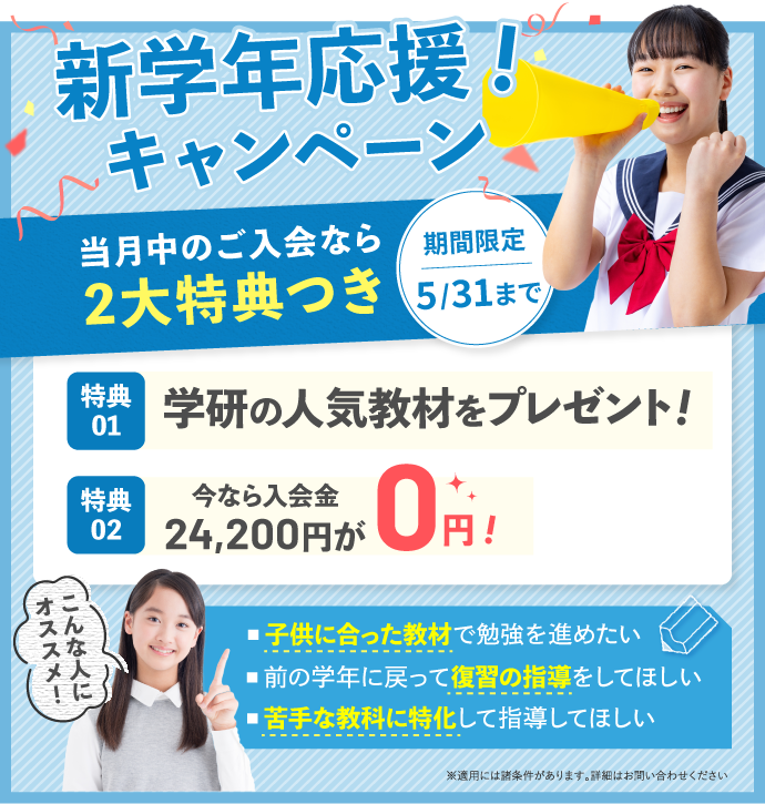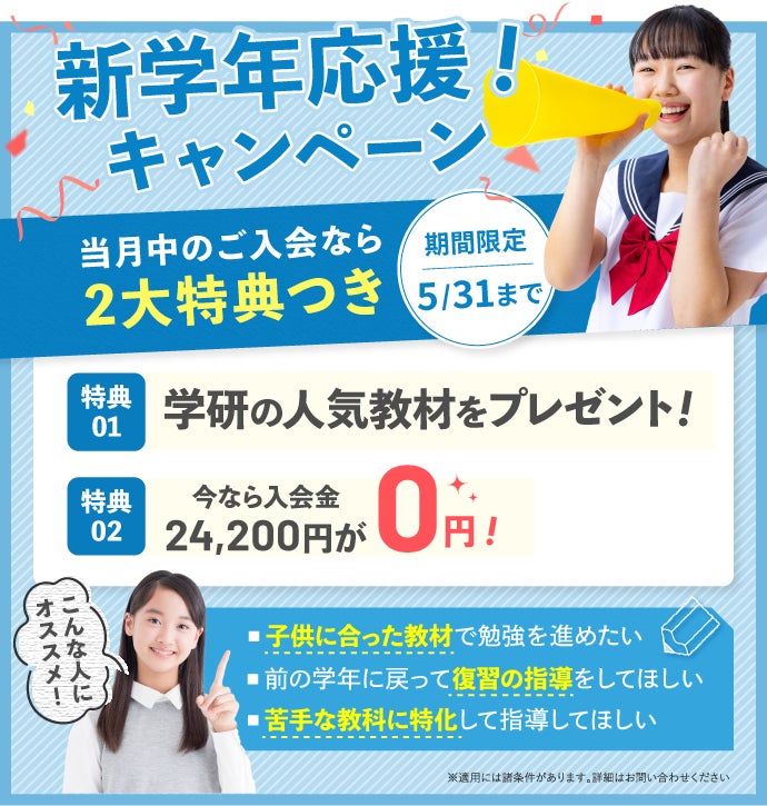 そんな悩みを解決すべく、この度「新学年応援キャンペーン」を実施します!