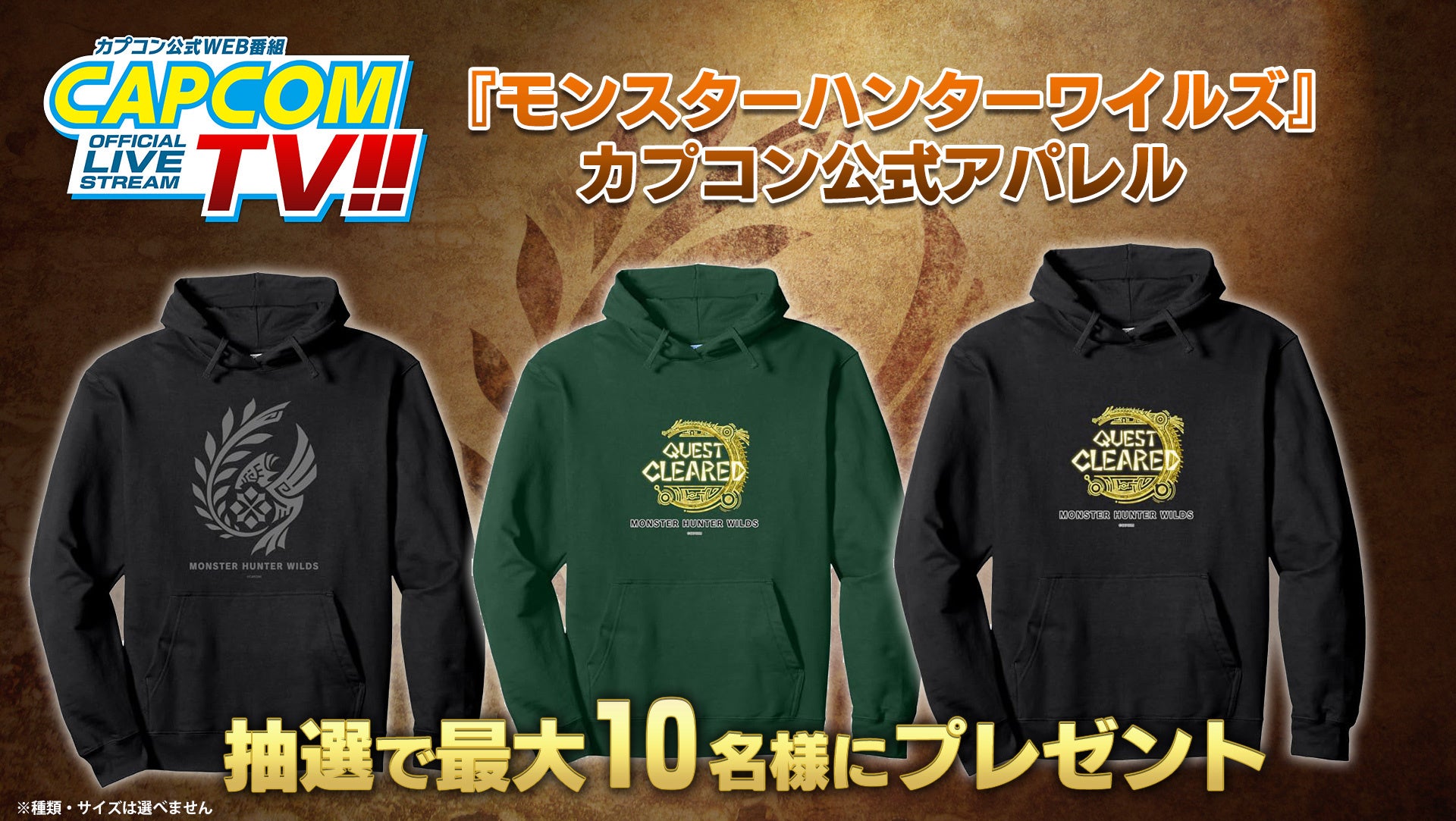 大人気のカプコン公式アパレルから『モンスターハンターワイルズ』のパーカーをプレゼント! 参加方法などは、「カプコンTV!!公式X(@CAPCOM_TV)」をフォローして番組当日をチェック!