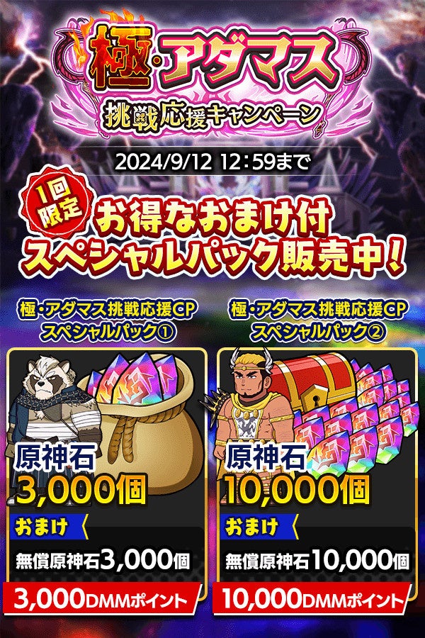 また、原神石がおトクに入手できる「極・アダマス挑戦応援キャンペーンスペシャルパック」も同時に登場!