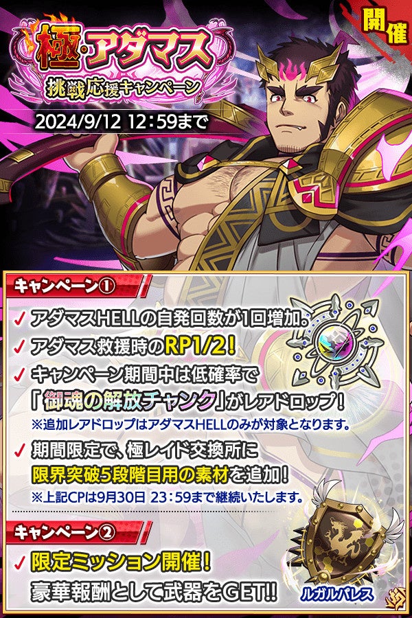 ■極・アダマス挑戦応援キャンペーンの期間限定パック登場!