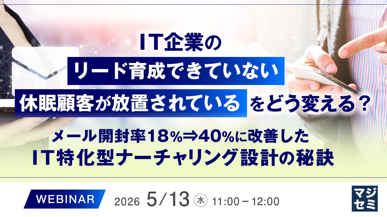 マジセミ株式会社は「IT企業の「リード育成できていない」「休眠顧客が放置されている」をどう変える?」というテーマのウェビナーを開催します。