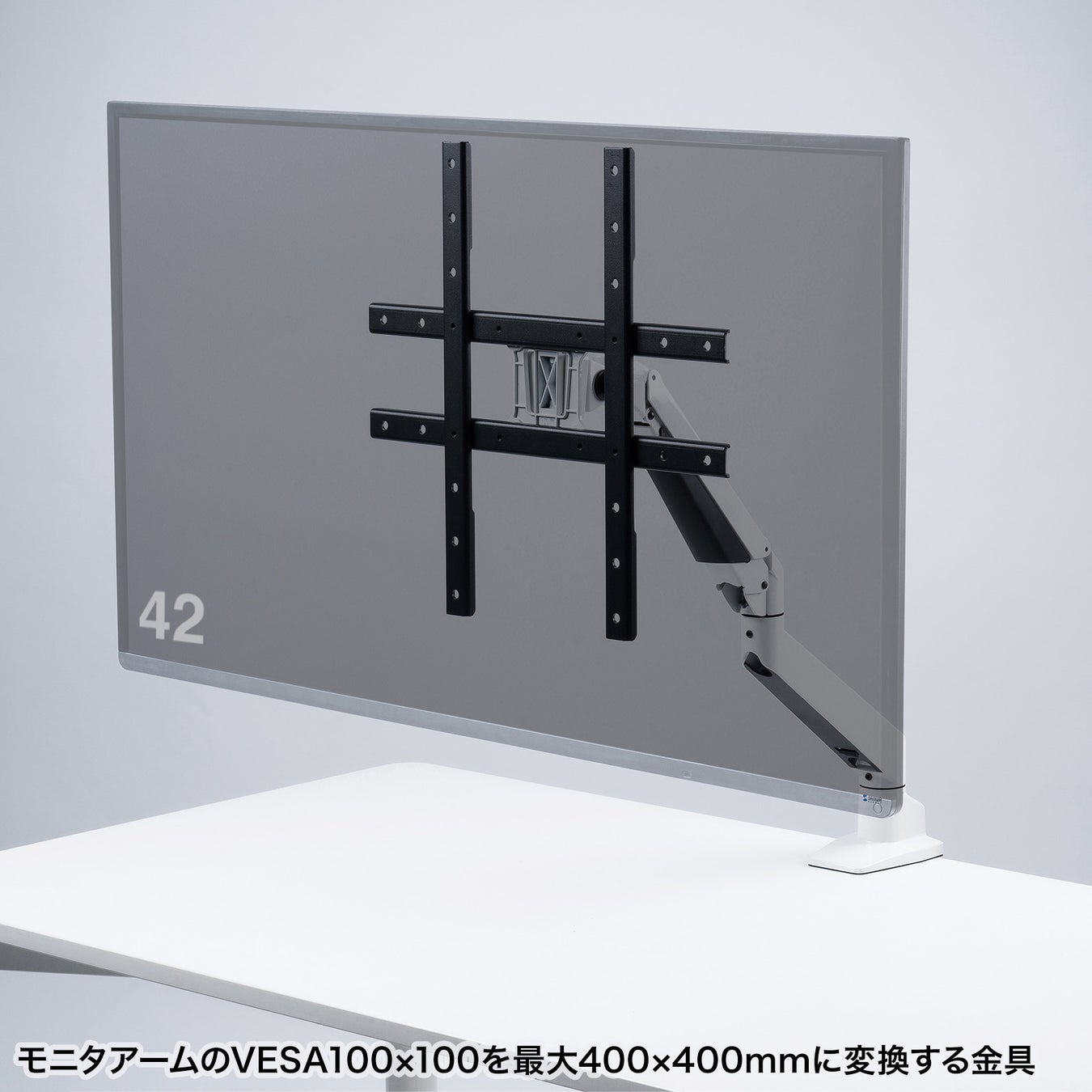 例えば、VESA100対応モニターアームに大型テレビ(VESA400対応)の設置が可能になります。