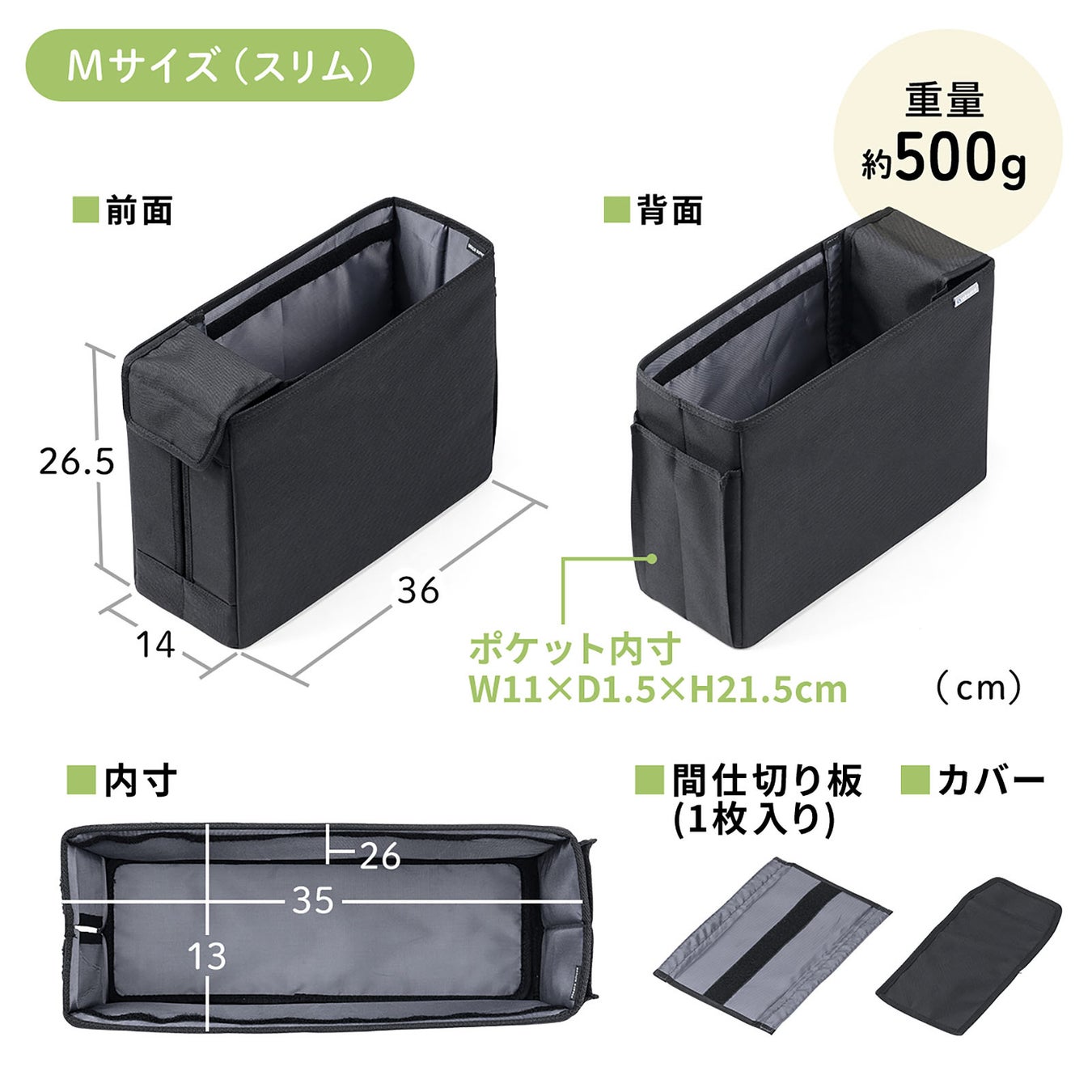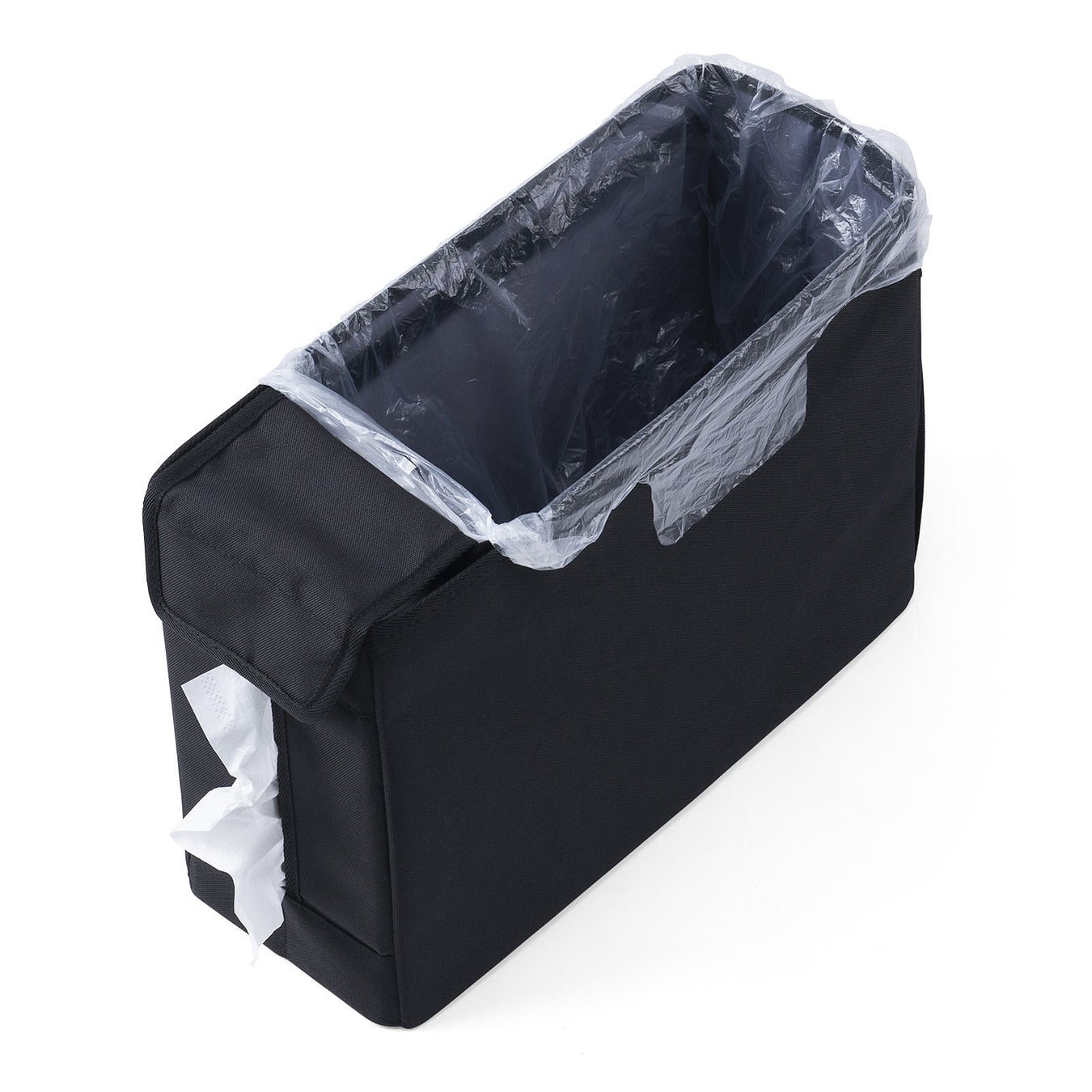 可動式の仕切り板が付いており、収納するアイテムに合わせて幅を調整することができます。ビニール袋を設置することでダストボックスとしてもご使用いただけます。