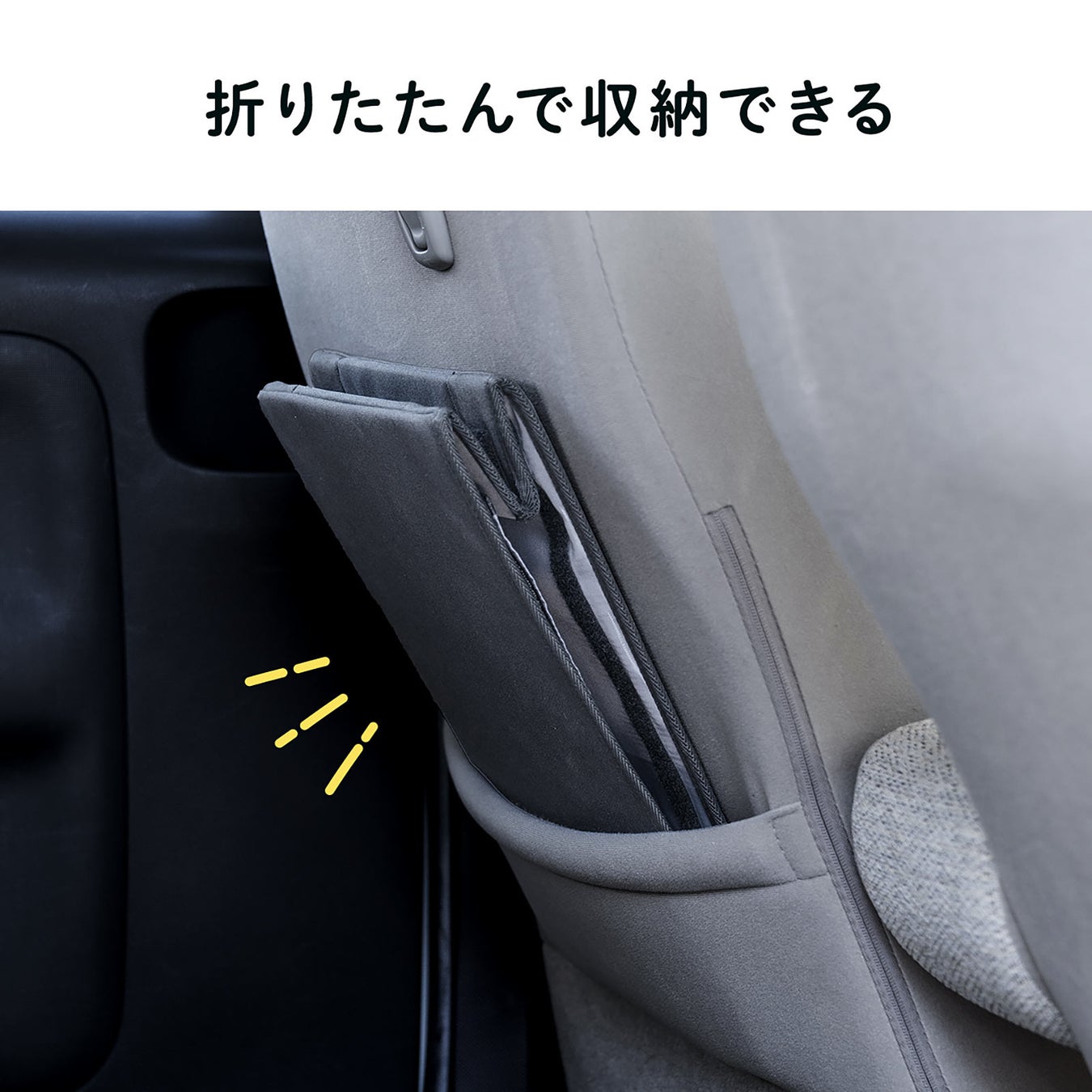スリムなデザインで限られた車内スペースでも邪魔になりません。使わない時は簡単に折りたためて、収納ポケットにスッキリ収まります。車のインテリアに馴染むデザインも魅力です。