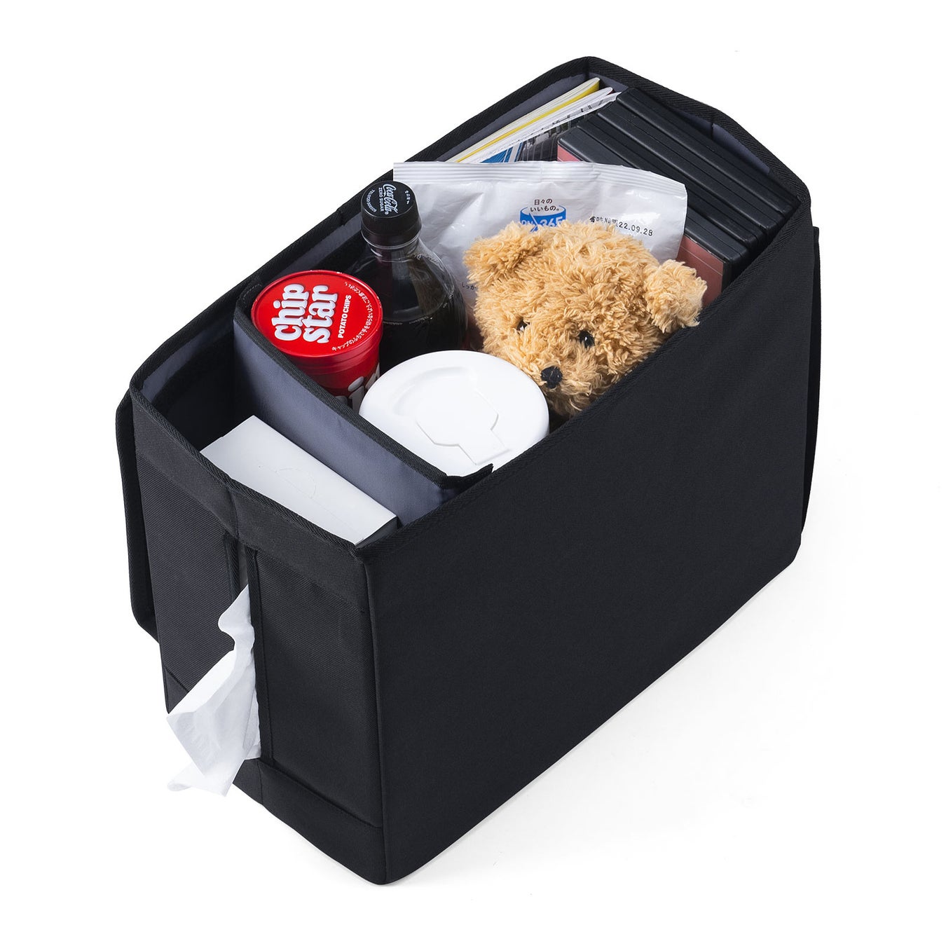 車内の小物をスッキリ収納できる、ティッシュケース付きウォークスルーボックス