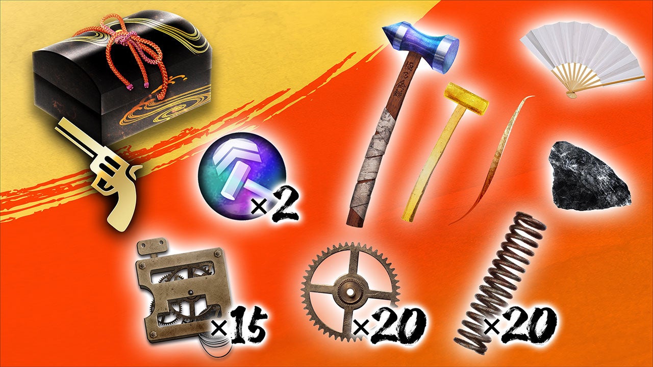 主に武器(刀)を作成、強化する際に使う素材やアイテムが詰まったパックです。