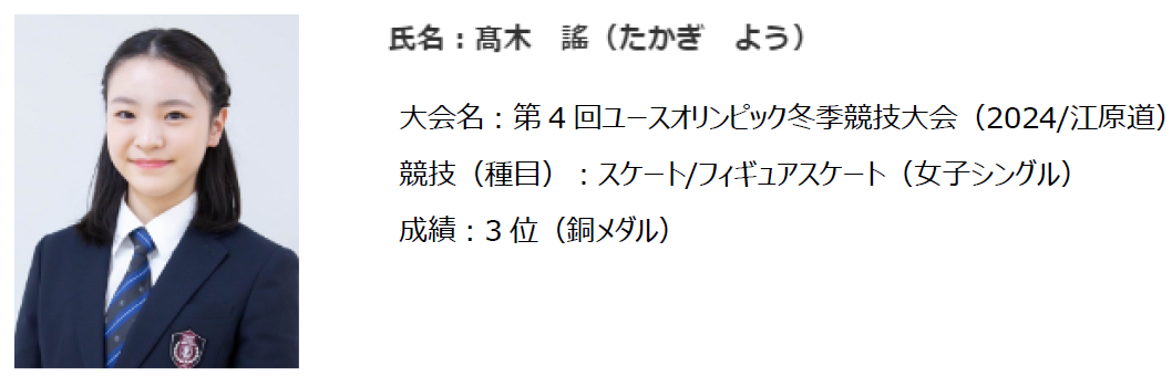 第4回ユースオリンピック冬季競技大会 (2024/江原道) フィギュアスケート(女子シングル) 銅メダル 髙木 謠(たかぎ よう)選手