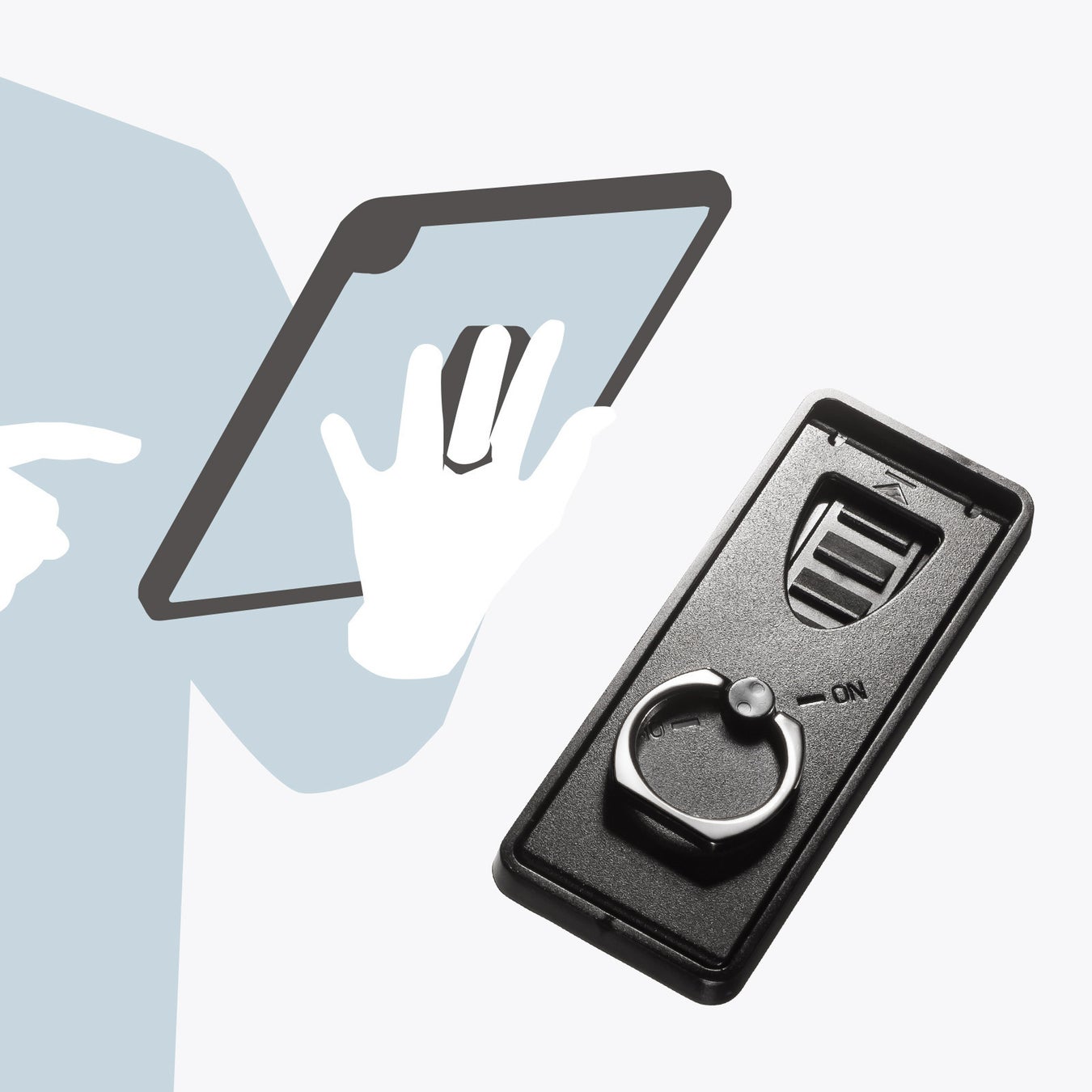 ケース裏面に貼り付け、リングに指を通すことで片手でiPadを持つことができます。