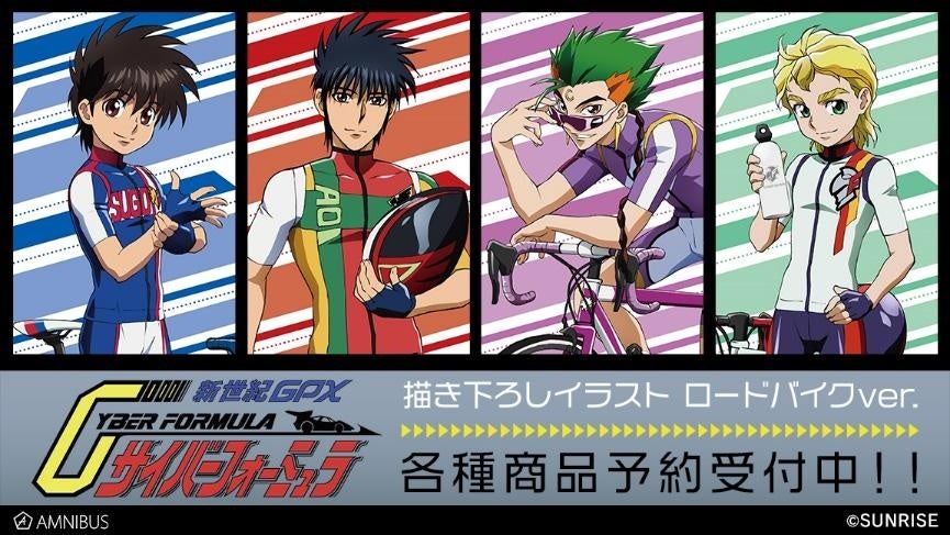 『新世紀GPXサイバーフォーミュラ』の描き下ろしイラスト ロードバイクver. トレーディングアクリルスタンドなどの受注を開始!!アニメ・漫画のオリジナルグッズを販売する「AMNIBUS」にて