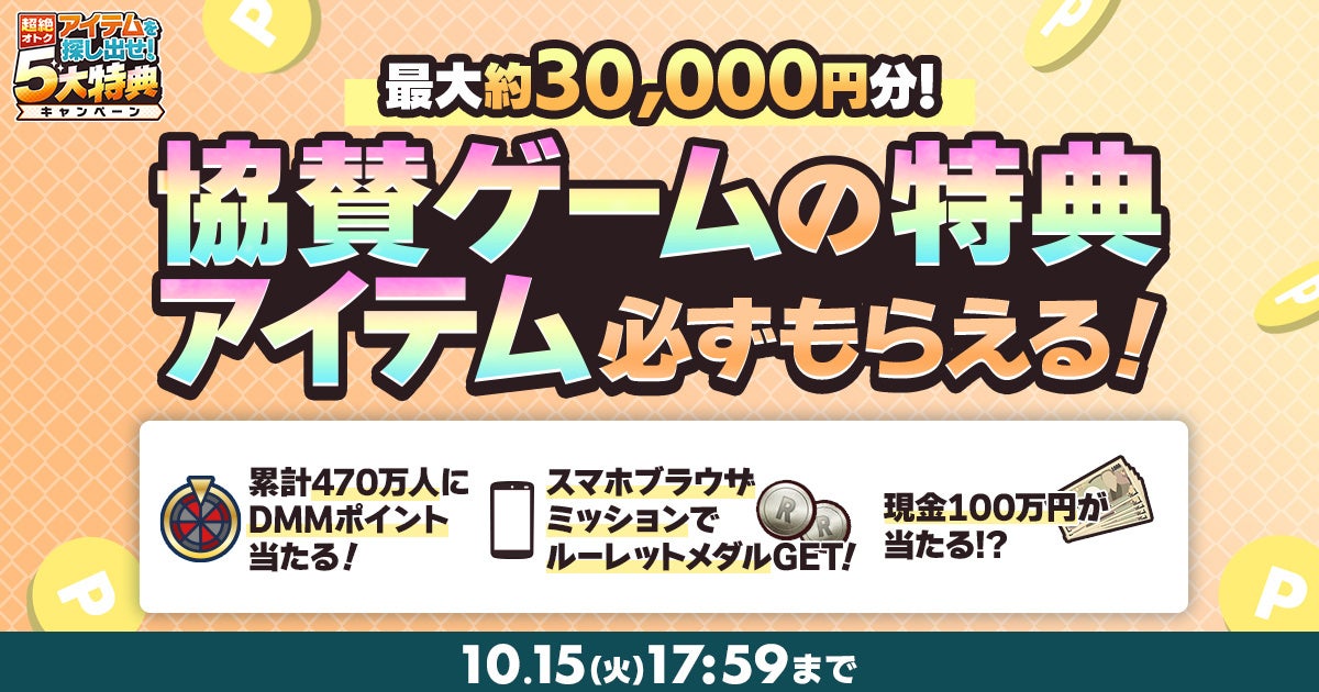 【キャンペーン2】ゲームを遊んでルーレットに挑戦!累計470万人にDMMポイントが当たる!