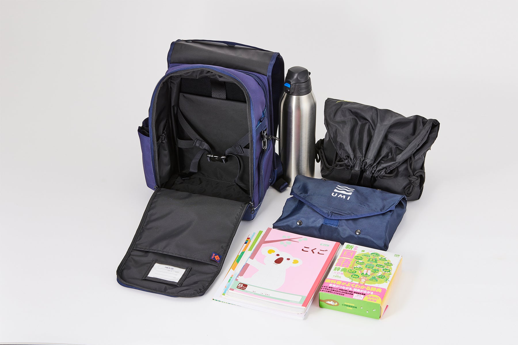 「スクールリュック UMI」は、環境配慮に加え、機能性にも優れ、軽く(1290g)、大容量(最大15リットル)で、小学生が使いやすい機能が満載です。