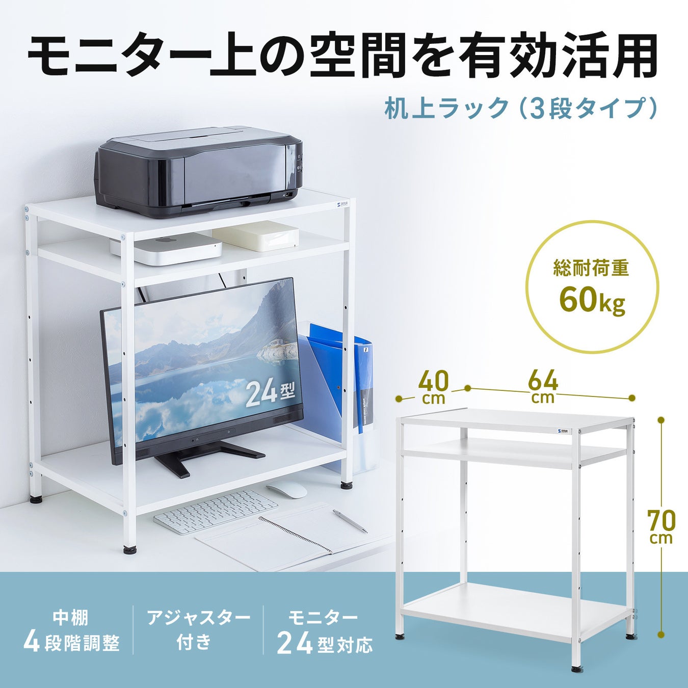 モニター上の空間を有効活用できる3段タイプの机上ラックを発売