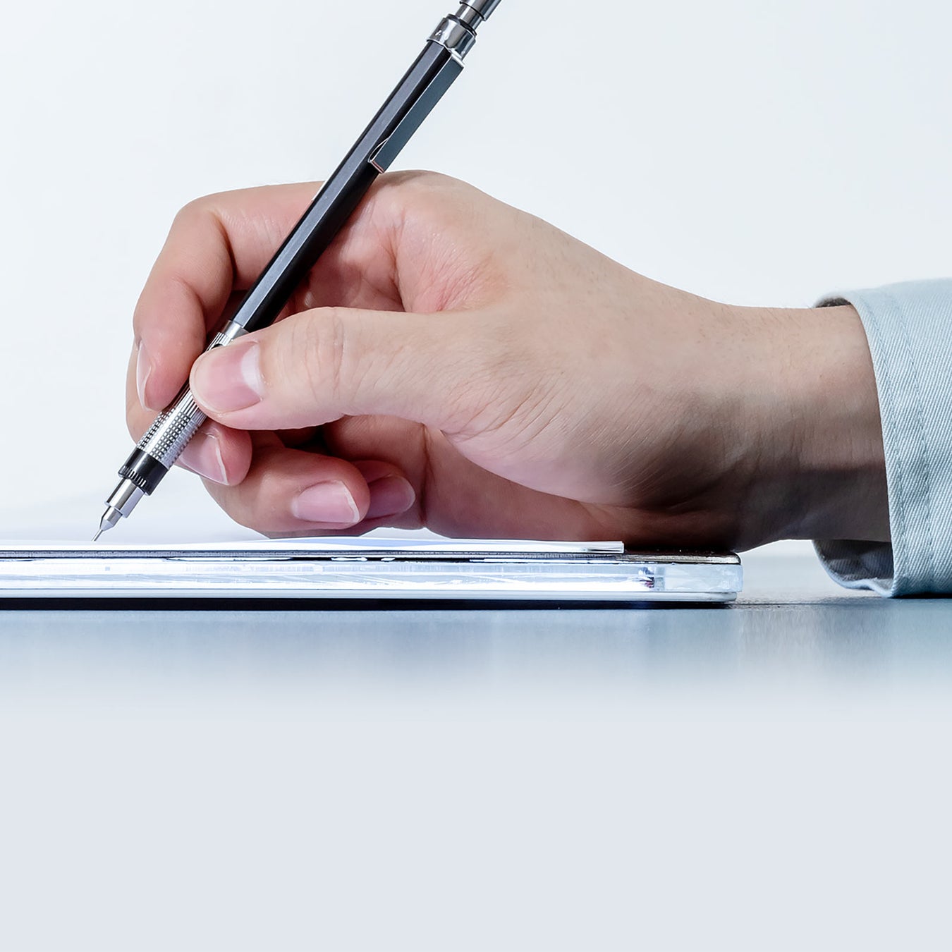厚さ9.5mmという驚くほど薄いデザインで段差のないフラットな面が、透写作業をよりスムーズにできます。軽量で持ち運びもしやすく、作業スペースを有効に活用できます。また、安全に配慮した角丸処理や裏面に滑り止めがついており正確に作業ができます。