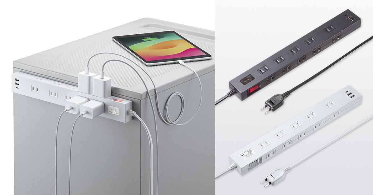 10個の小型ACアダプタを並べて差せる、USB急速充電ポート付きタップを発売