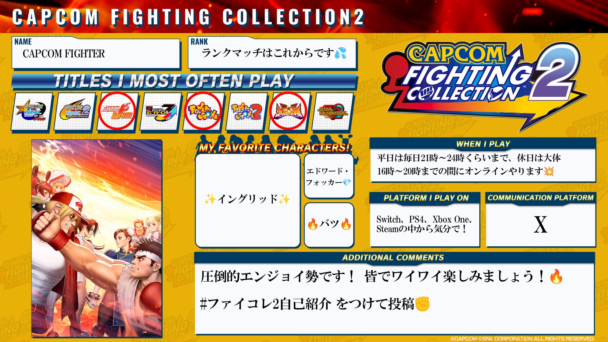 『カプコン ファイティング コレクション2』をさらに楽しみたいプレイヤーのために、収録タイトルのアートを使用したオリジナル自己紹介カード全18種を公式サイトで配布中!
