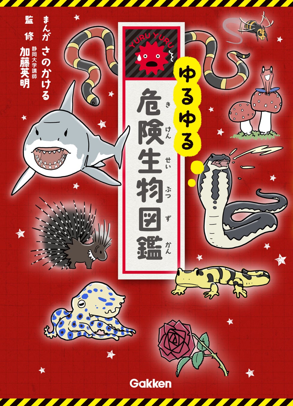 今まで危険生物をちょっと苦手に思っていた人でも楽しめる、ゆるーい4コマとイラスト解説!恐怖の事件や毒の強さなど、誰もが気になる知識もコラムで紹介!60種以上の危険生物があなたを待っています。