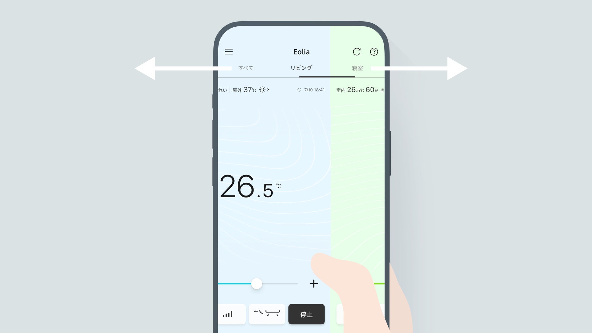 横スワイプでエアコンの切替えが可能になりました。片手でより便利にお使いいただけます。