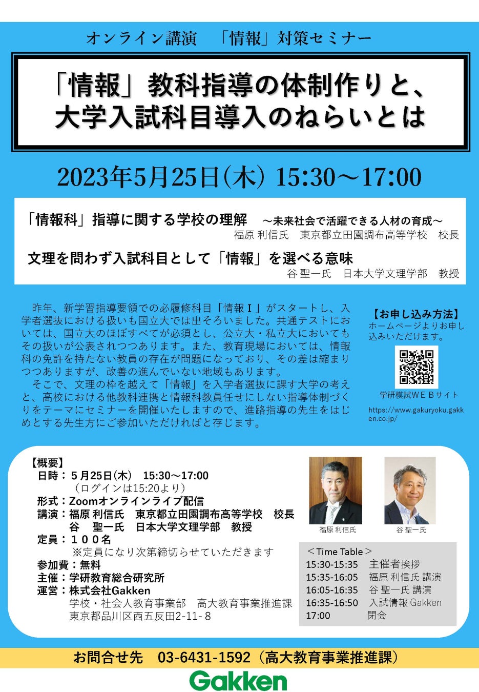 <高等学校先生向け・オンライン講演>「『情報』教科指導の体制作りと、大学入試科目導入のねらいとは」を5月25日に開催