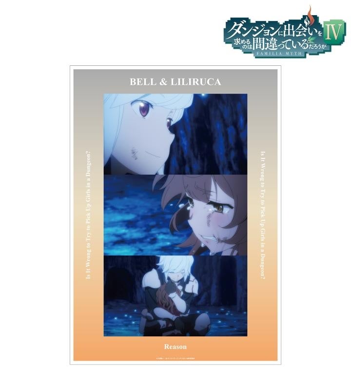 ベル・クラネル&リリルカ・アーデ、アイズ・ヴァレンシュタイン&リヴェリア・リヨス・アールヴ、ベル・クラネル&サンジョウノ・春姫、ベル・クラネル&ウィーネ、ベル・クラネル&リュー・リオンの場面写をA3サイズのマット加工されたポスターに仕上げました。