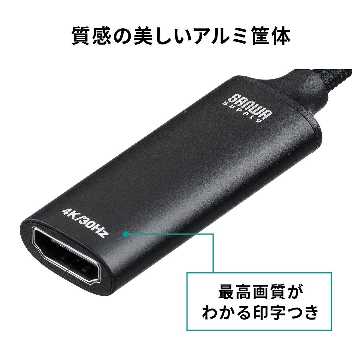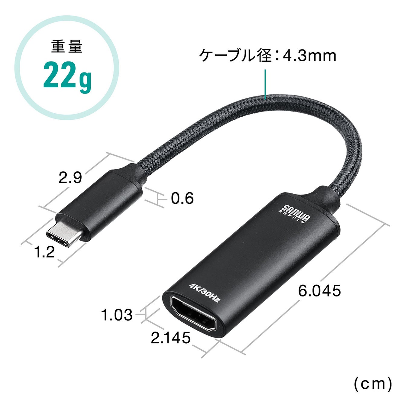 USB C - HDMI 変換アダプタ 4K/30Hz フルHD/60Hz ケーブル長11cm iPhone15/16 MacBook iPad Pro Air 対応 ブラック