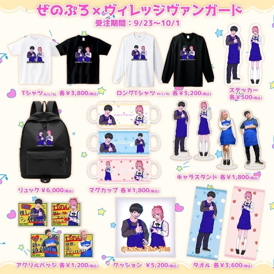 2023年9月23日(土)より、大人気YouTuber男女コンビ【ぜのぷろ:zeNon Project:】とヴィレッジヴァンガードの限定グッズがオンラインストアにて発売決定!!ヴィレヴァン店員に扮した二人の写真とイラストを使用したグッズは必見!期間限定のオンライン受注販売のみになりますのでお見逃しなく!!