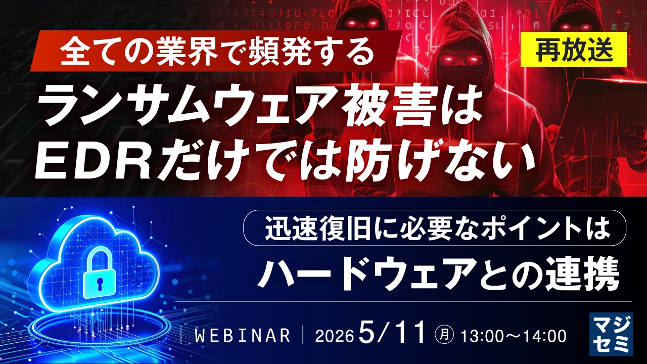 マジセミ株式会社は「【再放送】全ての業界で頻発するランサムウェア被害はEDRだけでは防げない」というテーマのウェビナーを開催します。