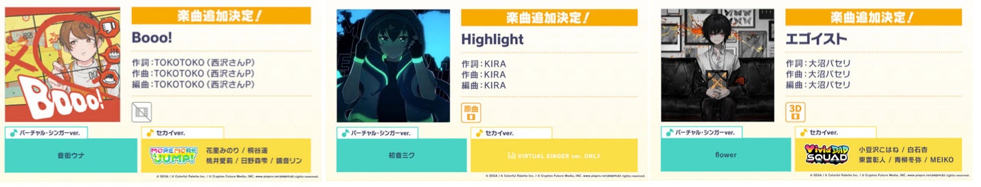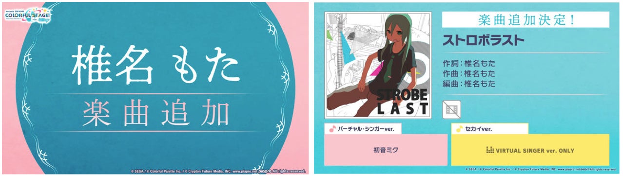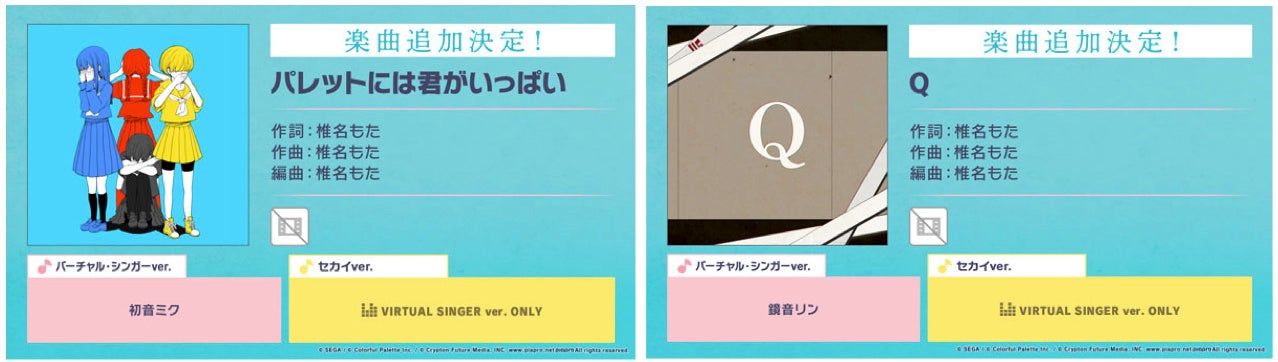 新たなリズムゲーム楽曲として、「ストロボラスト」(作詞・作曲:椎名もた)、「パレットには君がいっぱい」(作詞・作曲:椎名もた)、「Q」(作詞・作曲:椎名もた)の追加が決定いたしました。