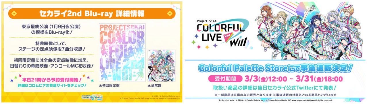 事後通販の対象商品など、詳しい情報はセカライ公式Twitter( https://twitter.com/pjsekai_live )にて公開されますのでお楽しみに!