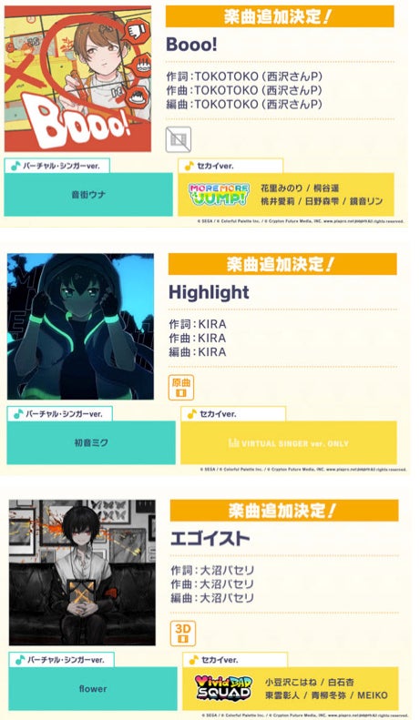 新たなリズムゲーム楽曲として、以下3 曲の追加が決定いたしました。