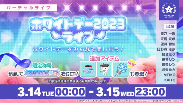 また、「ホワイトデー2023 ライブ」の開催に先立ち、3月12日(日)15:00 よりバーチャルショップにて、ペンライト「キャンディペンライト」、アクセサリ「マカロンハット」、フルセット「ホワイトデープレゼント」を販売いたします。