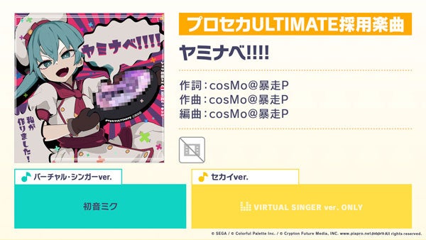 ■リズムゲーム楽曲に「プロセカULTIMATE」採用作品「ヤミナベ!!!!」追加!