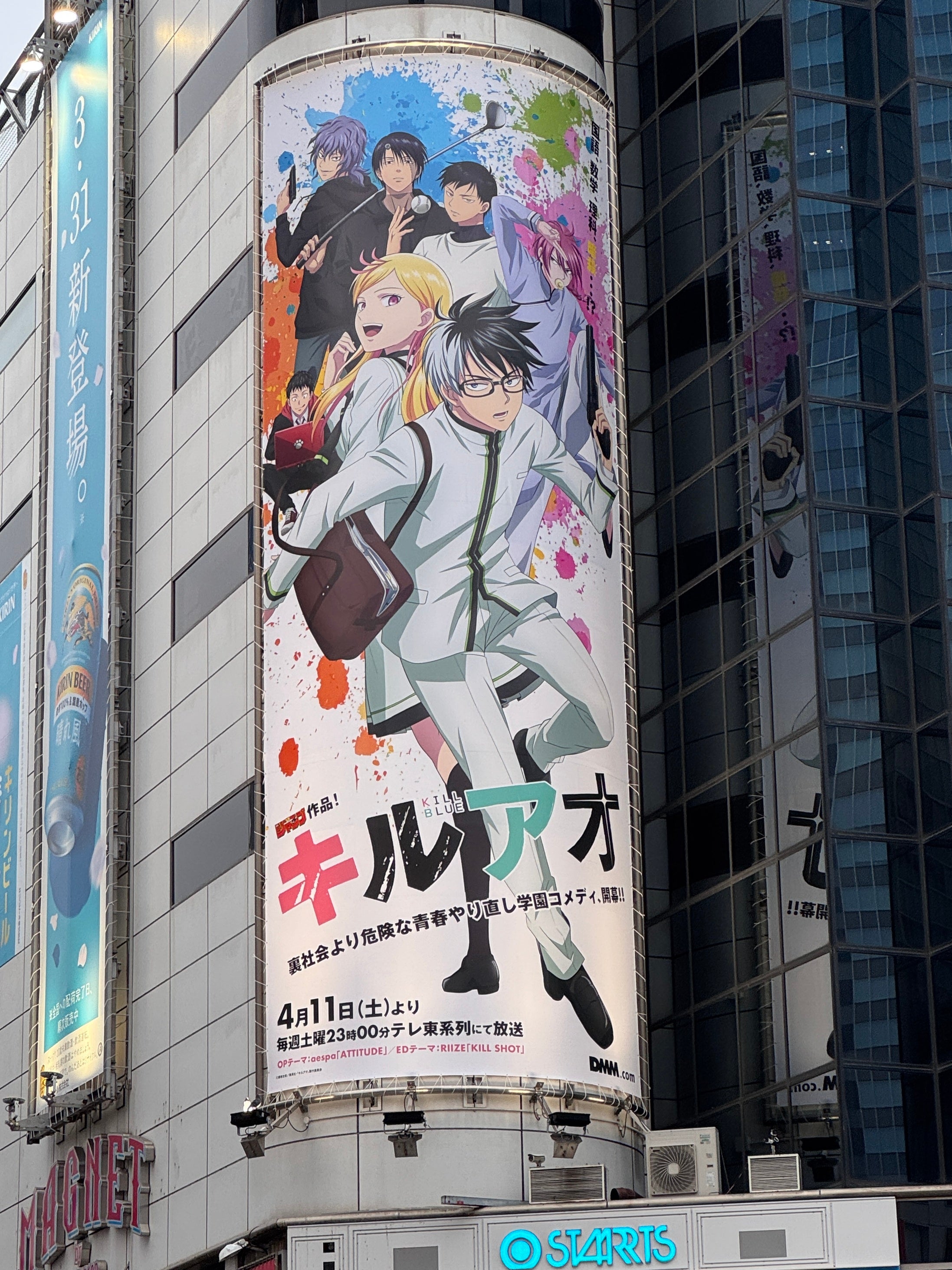 週刊少年ジャンプの人気漫画「キルアオ」(原作:藤巻忠俊(代表作:「黒子のバスケ」、「ROBOT×LASERBEAM」)が2026年4月11日(土)夜11時からテレ東系列にてTVアニメを放送開始することに合わせ、渋谷駅クランブル交差点周辺を中心とする広告ジャックが決定いたしました!