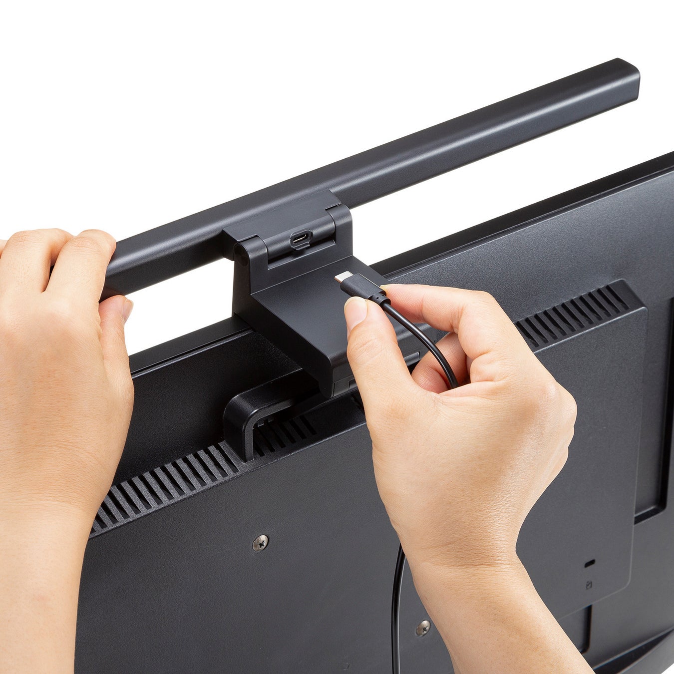 ディスプレイ上部に引っ掛けるだけで簡単に設置できるので、場所を取りません。
