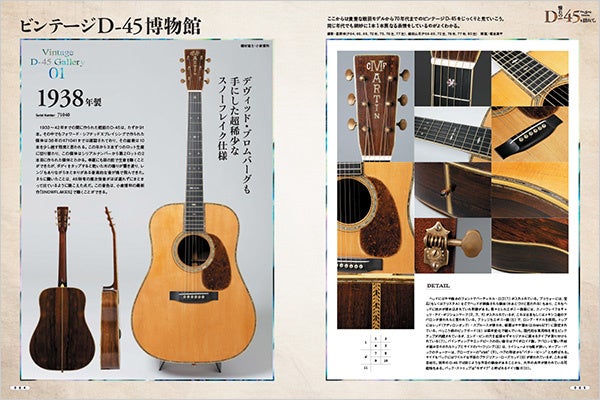 メイン特集は、名実ともにアコースティック・フラットトップの最高峰に君臨するマーティンD-45。このギターは、シンギング・カウボーイと呼ばれたジーン・オートリー専用の特注モデルとして1933年に誕生し、1942年までの間にわずか91本のみが製作されました。今やそのオリジナルの価値は1本数千万円と言われています。