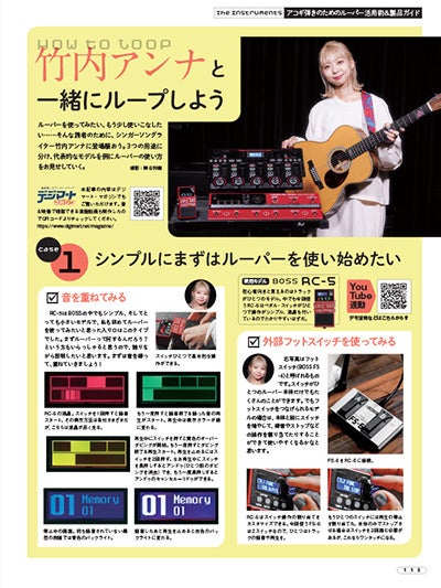 第2特集では、Withコロナのギター界において、よりいっそう注目を集めているルーパーという魔法の小箱に注目しました。自分の演奏をリアルタイムに重ねることで、簡単にひとりふた役以上の演奏ができ、いわゆるソロ・ギターとは異なる新しい世界を創り出すことができます。エド・シーランを始め世界中の鬼才たちがその虜となり、もはやひとつの音楽スタイルが確立されつつあるのです。そんなループ・ペダルの使い方を基礎の基礎から徹底レクチャー。加えてAnly、井草聖二、まるやまたつやの実例インタビュー、竹内アンナがBOSSのルーパー3モデルを用いながら操作法を実践、さらにReNの試奏コメントとともに最新9機種を紹介します。