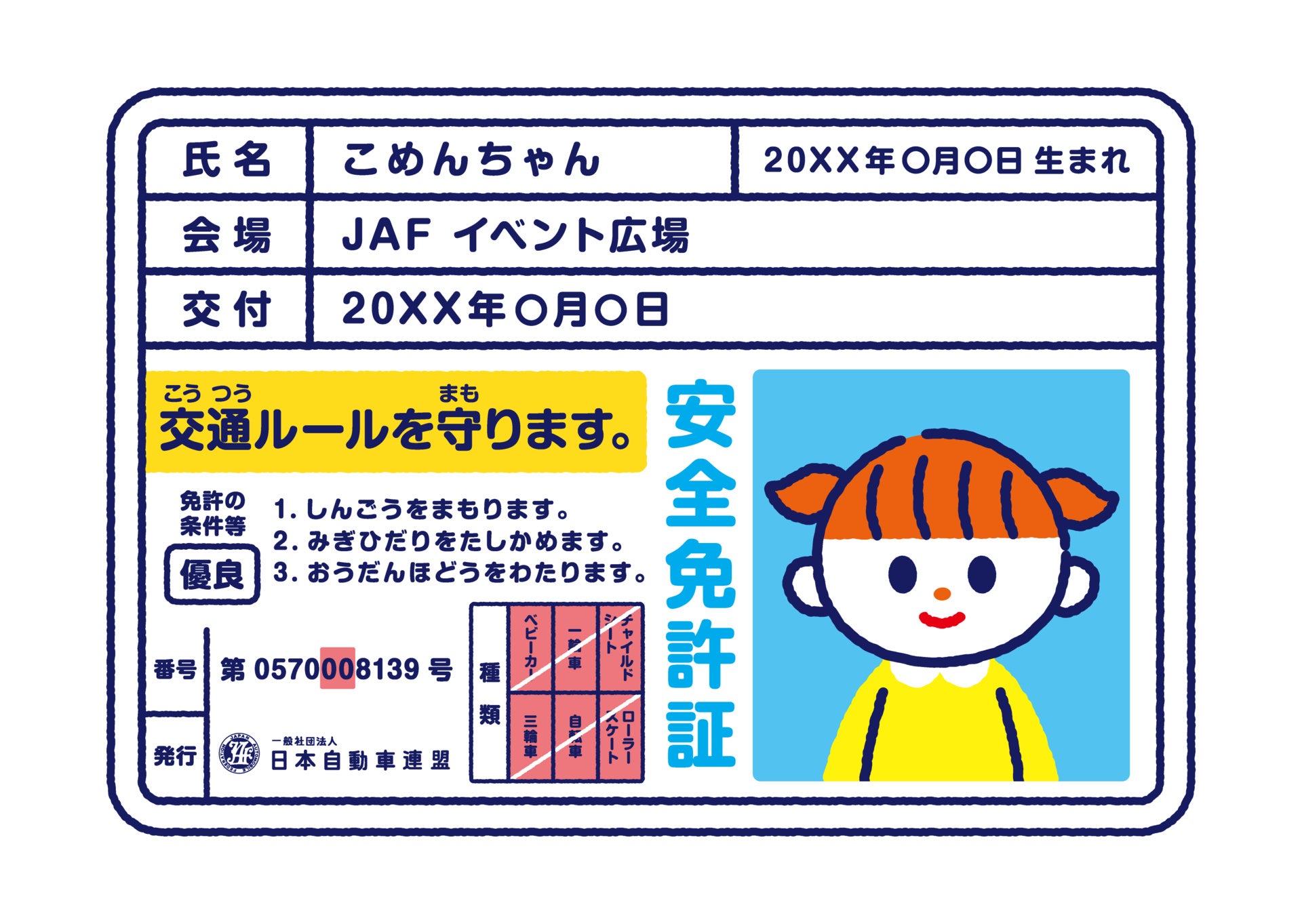 子ども安全免許証の発行(運転免許証そっくりのカード)やJAFオリジナルグッズが当たる抽選会を開催