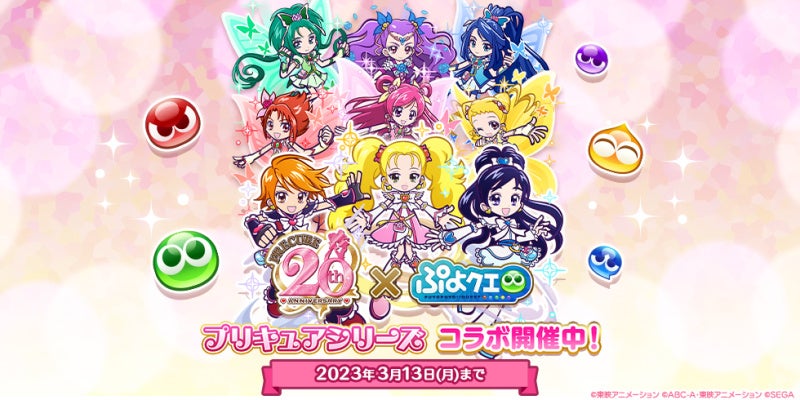 株式会社セガは、大好評配信中のパズルRPG『ぷよぷよ!!クエスト』にて、2023年3月3日(金)より、テレビアニメ『プリキュア』シリーズとのコラボレーションイベントを開催します。