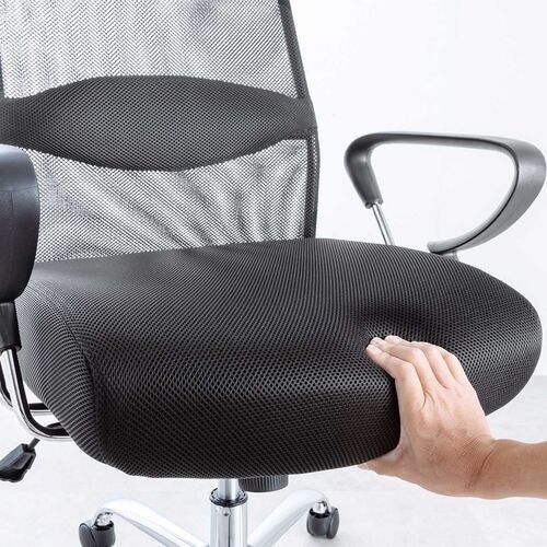 椅子独特の蒸れや圧迫感を最大限に抑えています。座面には他社製品の約2倍の厚さを持つクッションを採用しており、座った時の感触が格段に優れています。