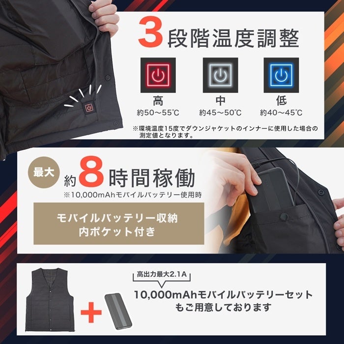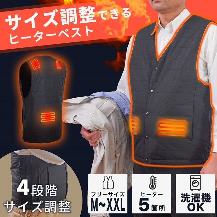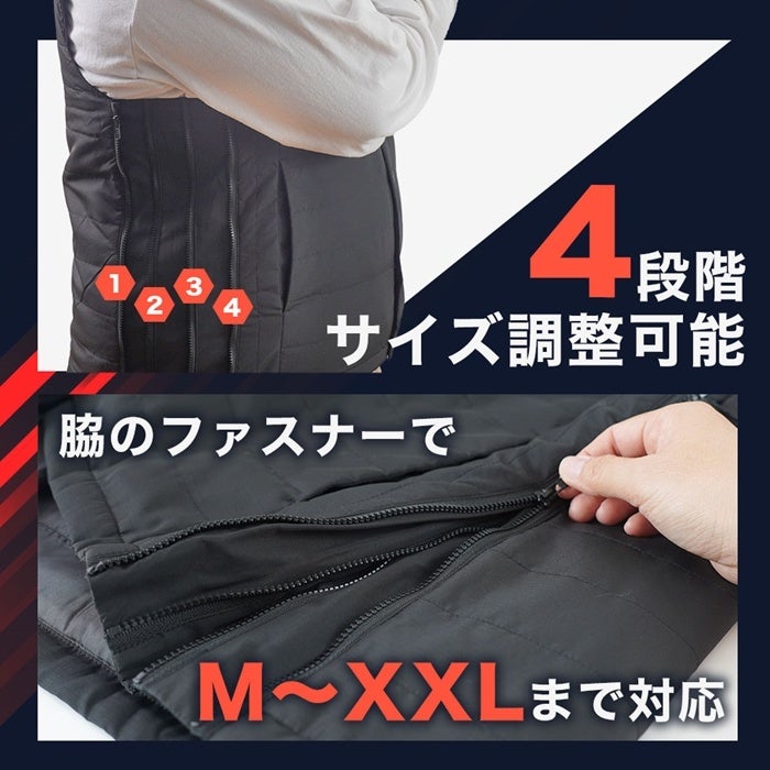 M~XXLサイズまで調整可能!冬でも暖かい薄手のヒーター内蔵インナーベスト
