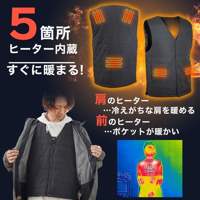 サンコー株式会社より、10秒であったか!5箇所にヒーターが内蔵されている2023年最新のヒーターベストが登場。こちらをヴィレッジヴァンガードオンラインにて取り扱いを開始いたしました。