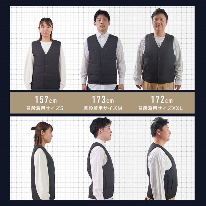 サイズ調整できる「ヒーターベスト」は、重さが約320gと軽量で薄手タイプ。