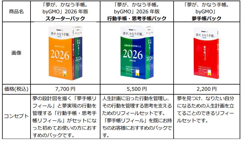 ・「夢が、かなう手帳。 byGMO」2026年版 スターターパック