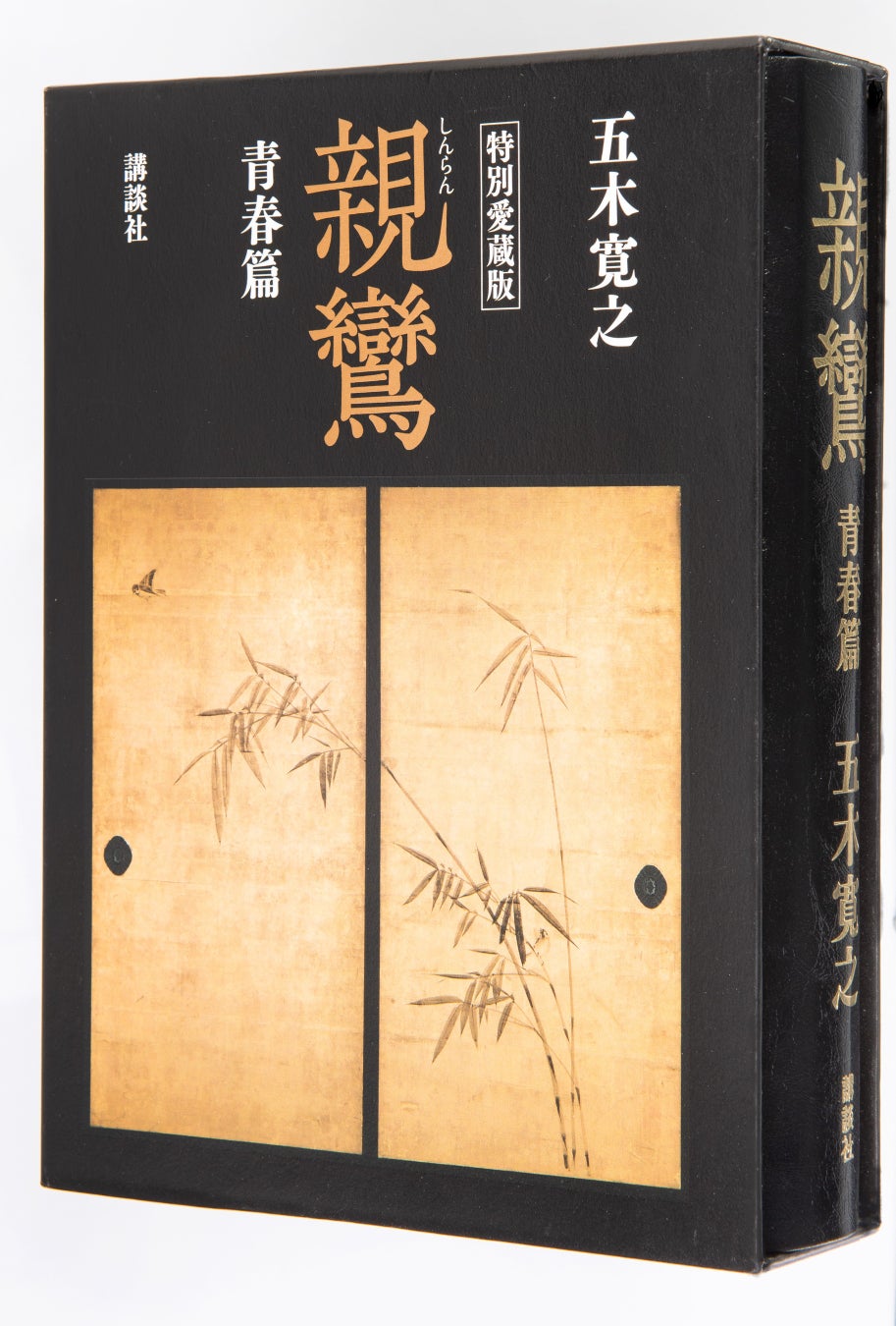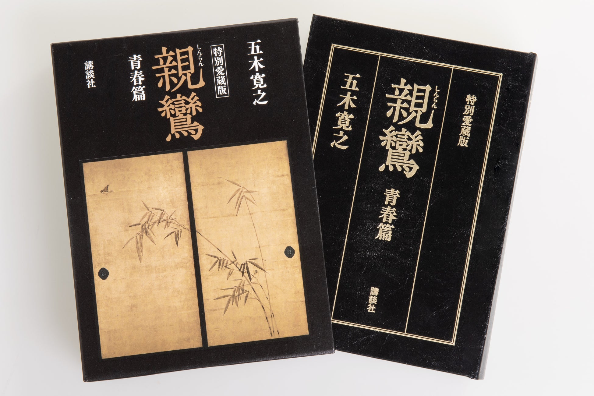 生誕850年・立教開宗800年、そして京都・南座による舞台化を記念しての特別出版。円山応挙の絵に包まれた函に入っているのは、艶やかな黒地の表紙に金箔のタイトルが浮かび上がる豪華本。そのご生涯を絵でたどることができる「特製付録 親鸞聖人御絵伝」もセットになって、ぜひ1冊備えたいあの国民文学の愛蔵版です。