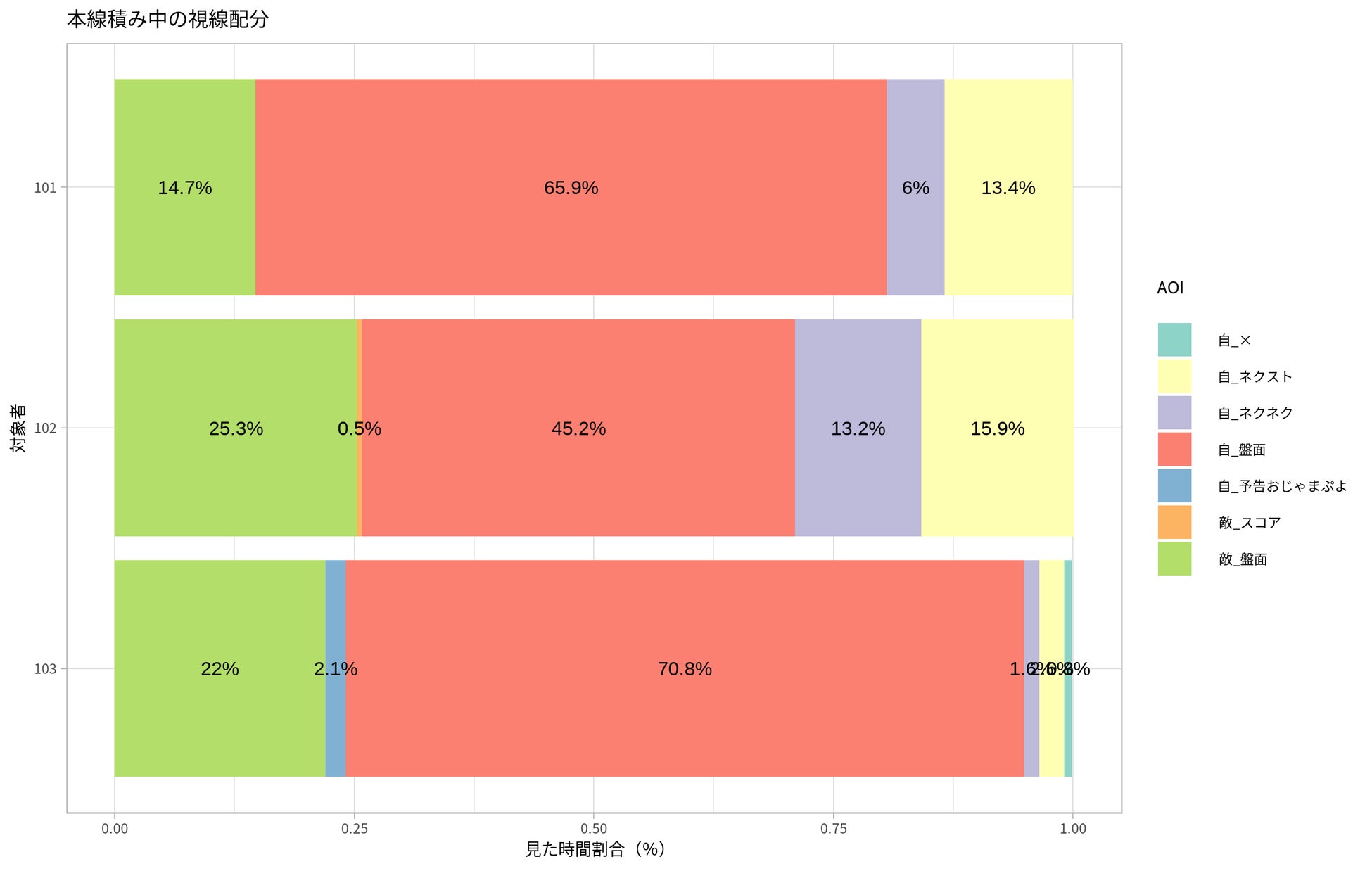 プレイヤー103(プロ:飛車ちゅう選手)はプレイヤーフィールド、対戦相手フィールドを見る時間が長い ※別注