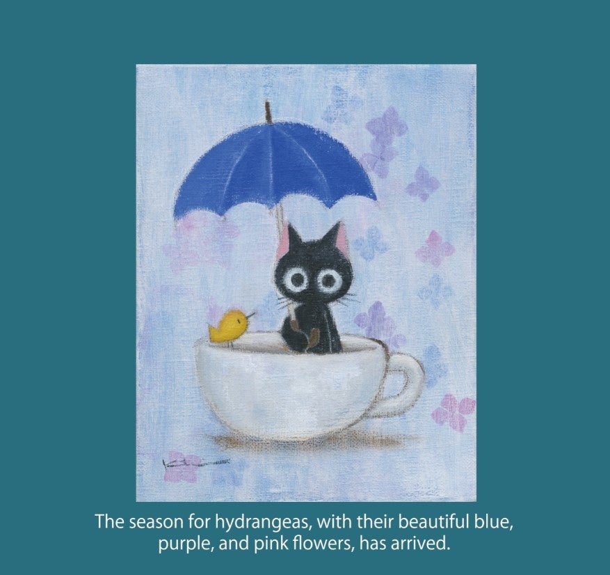 香月和夫さんの描く、愛らしい黒猫が特長的な透明感のあるイラストをプリントしています。