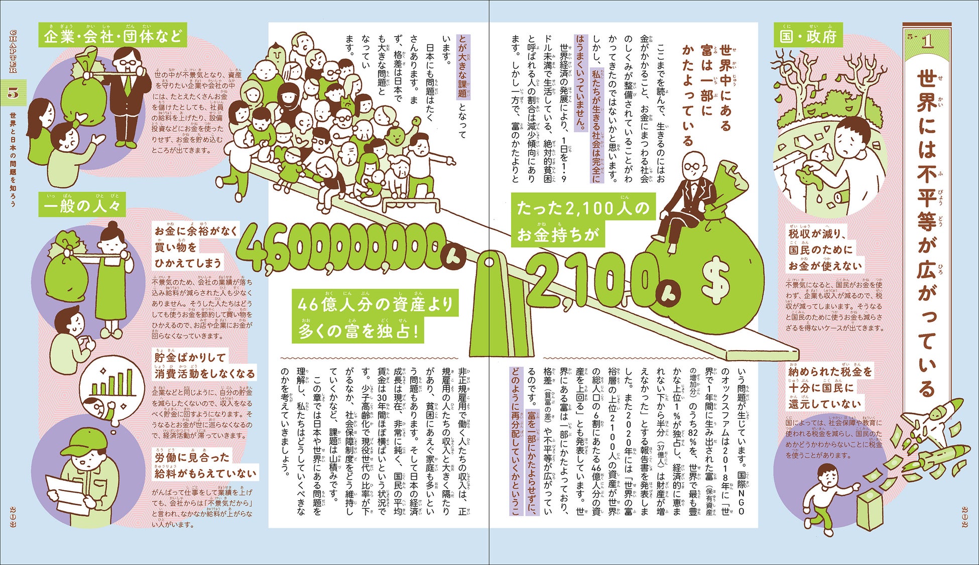 ―お金を切り口に、経済のしくみや世の中の抱える問題など、さまざまなテーマをわかりやすく解説してあるのが印象的です。
