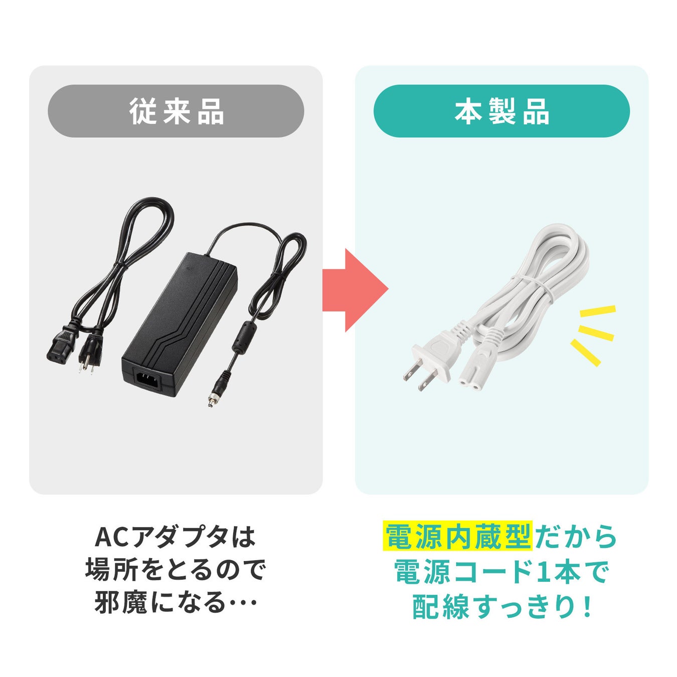 ACアダプタが不要。コード1本で配線できるので、コンセント周りがすっきりします。