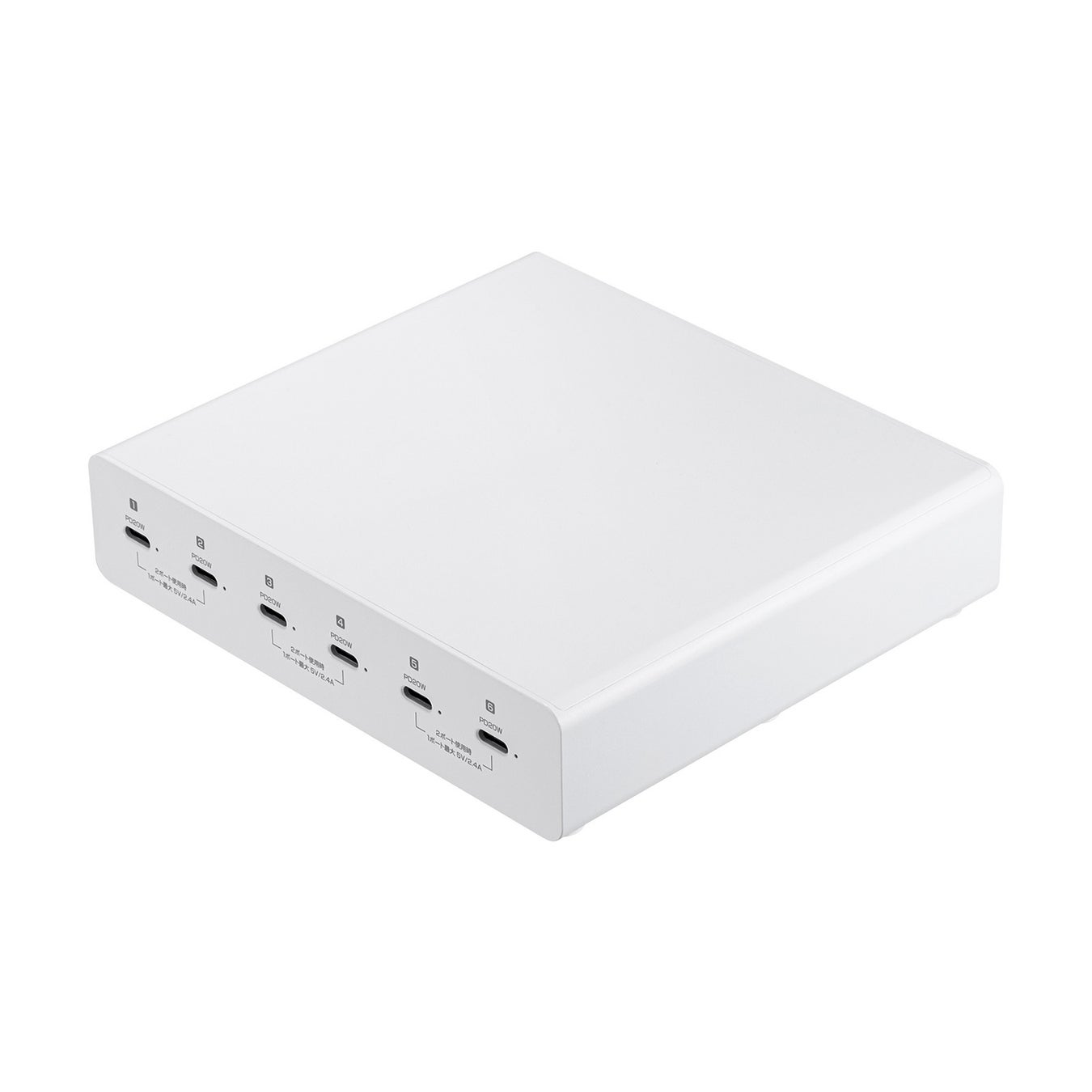 最大6台のスマートフォンやタブレットなどをまとめて充電できる、6ポートのUSB Type-C出力を備えたUSB充電器です。